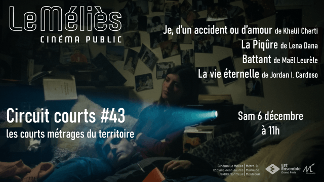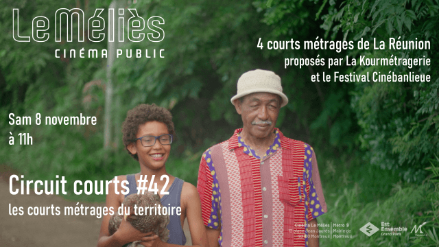 Circuit Courts est le rendez-vous mensuel de programmation de courts métrages au Méliès. Nous y mettons en valeur les films tournés sur le territoire, réalisés et produits par des Montreuillois.es et voisin.e.s. Si vous souhaitez projeter votre film lors d'une de ces séances du samedi matin, n'hésitez pas à nous écrire.
